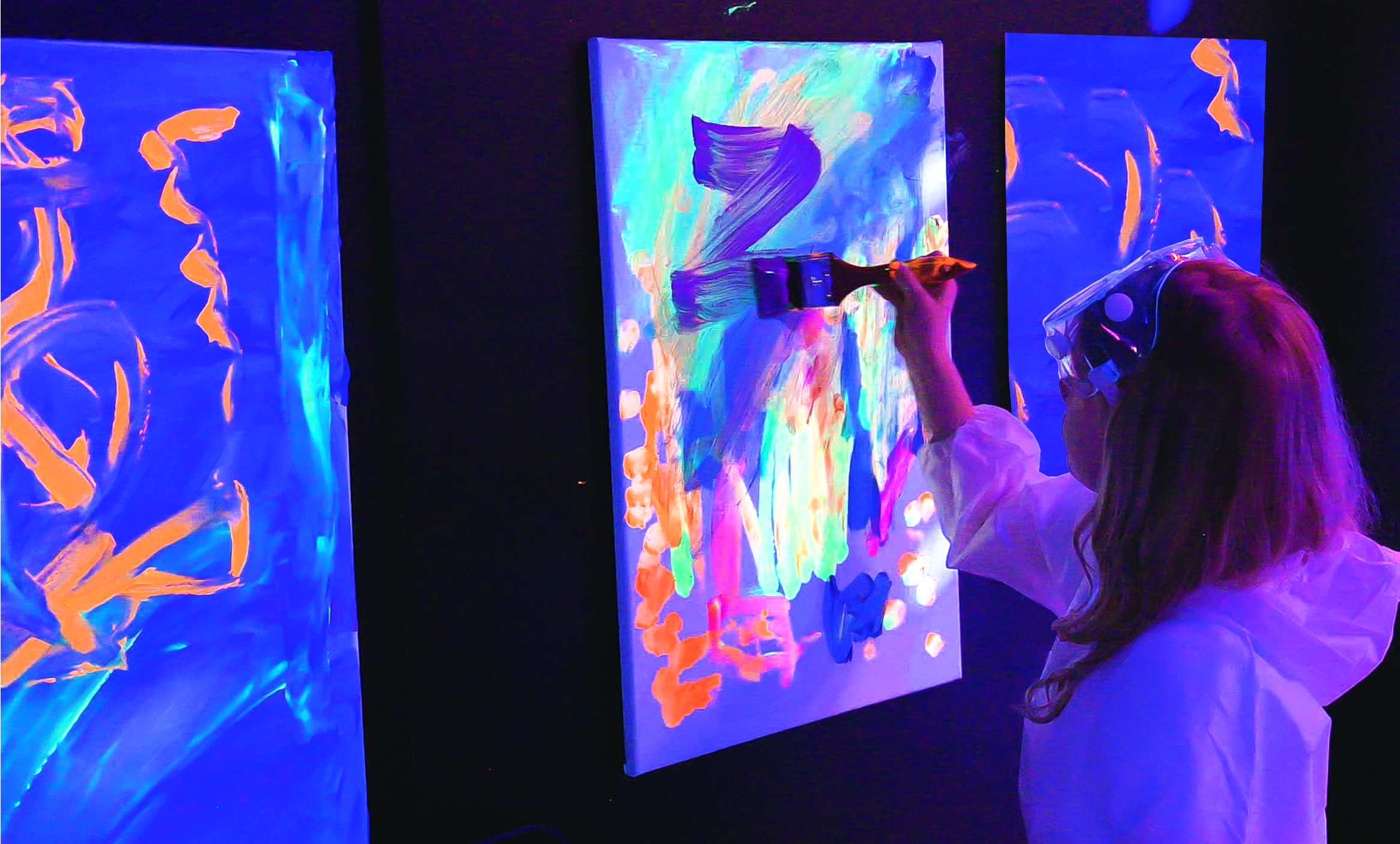 *Our Glow Studio is an evolving glow-in-the-dark creative experience that we refresh regularly. Each visit includes a take-home canvas and all the materials you need – paint, brushes, and more.